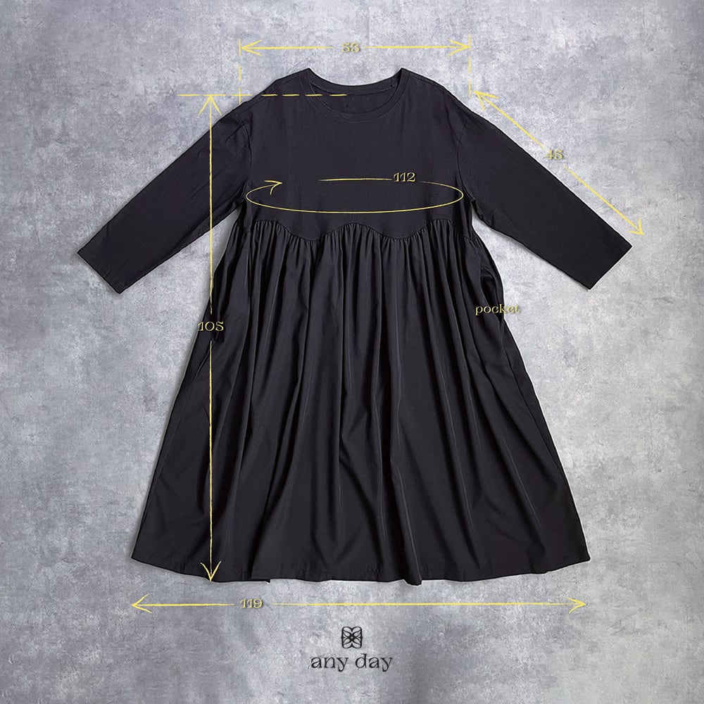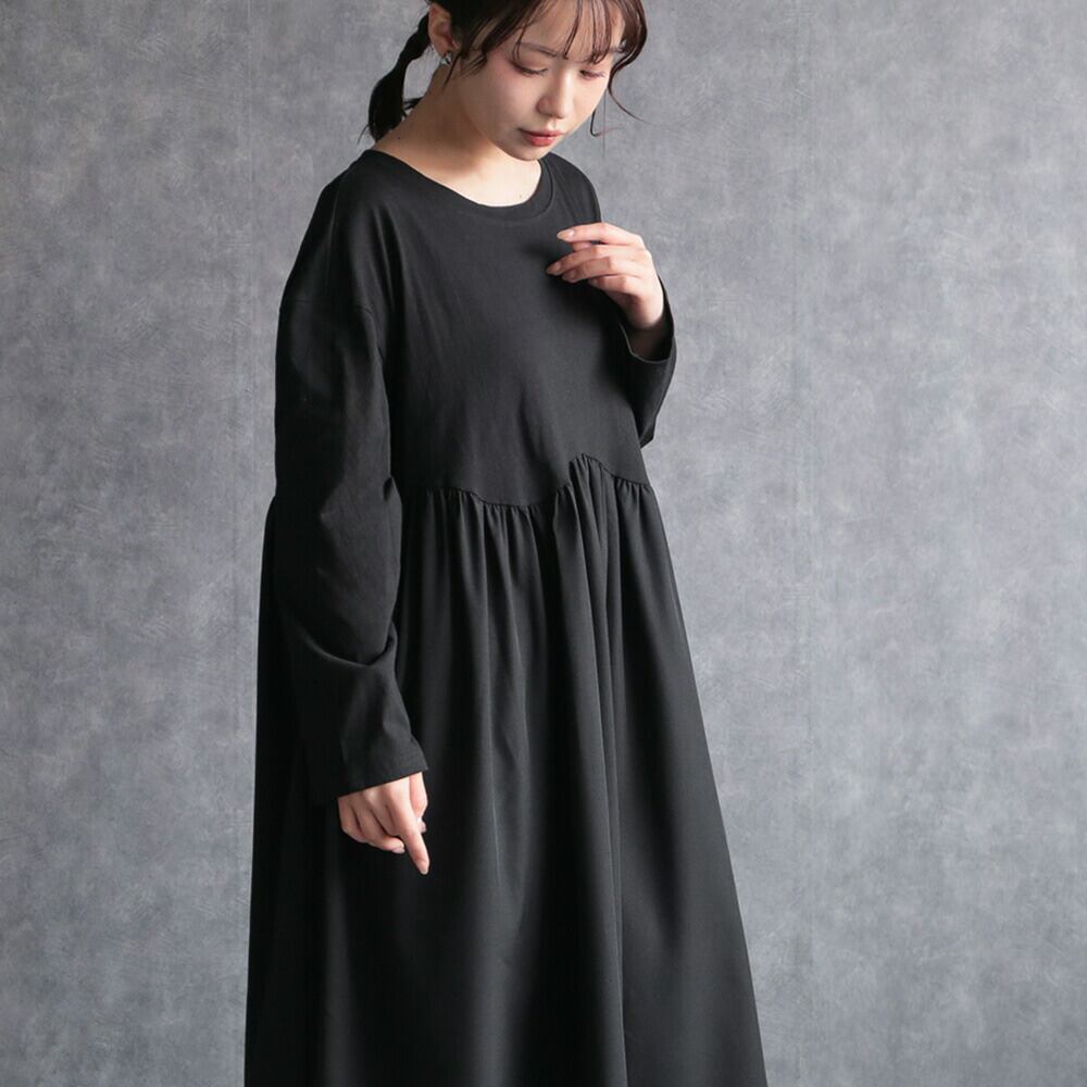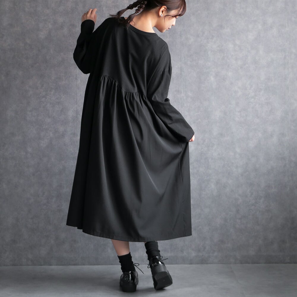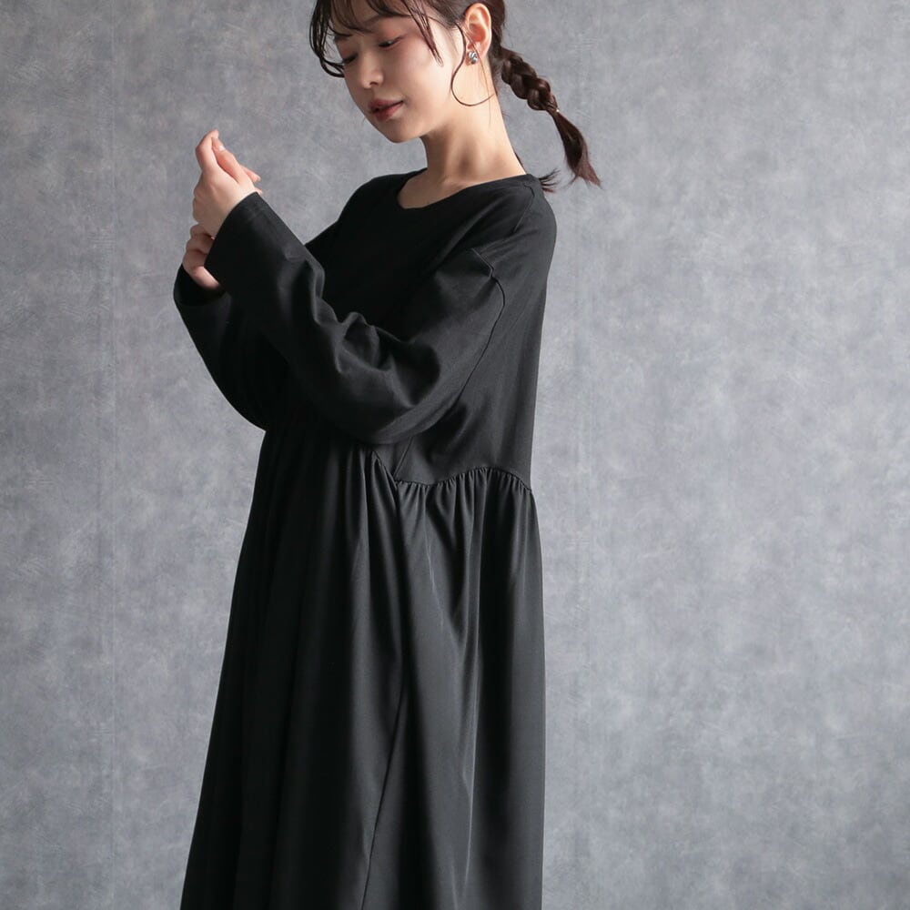 330117 any day エニーデイ ワンピース レディース 長袖 黒 コットン100% ロング丈 ワンピ カジュアル ゆったり 体型カバー シンプル 20代 30代 40代 送料無料