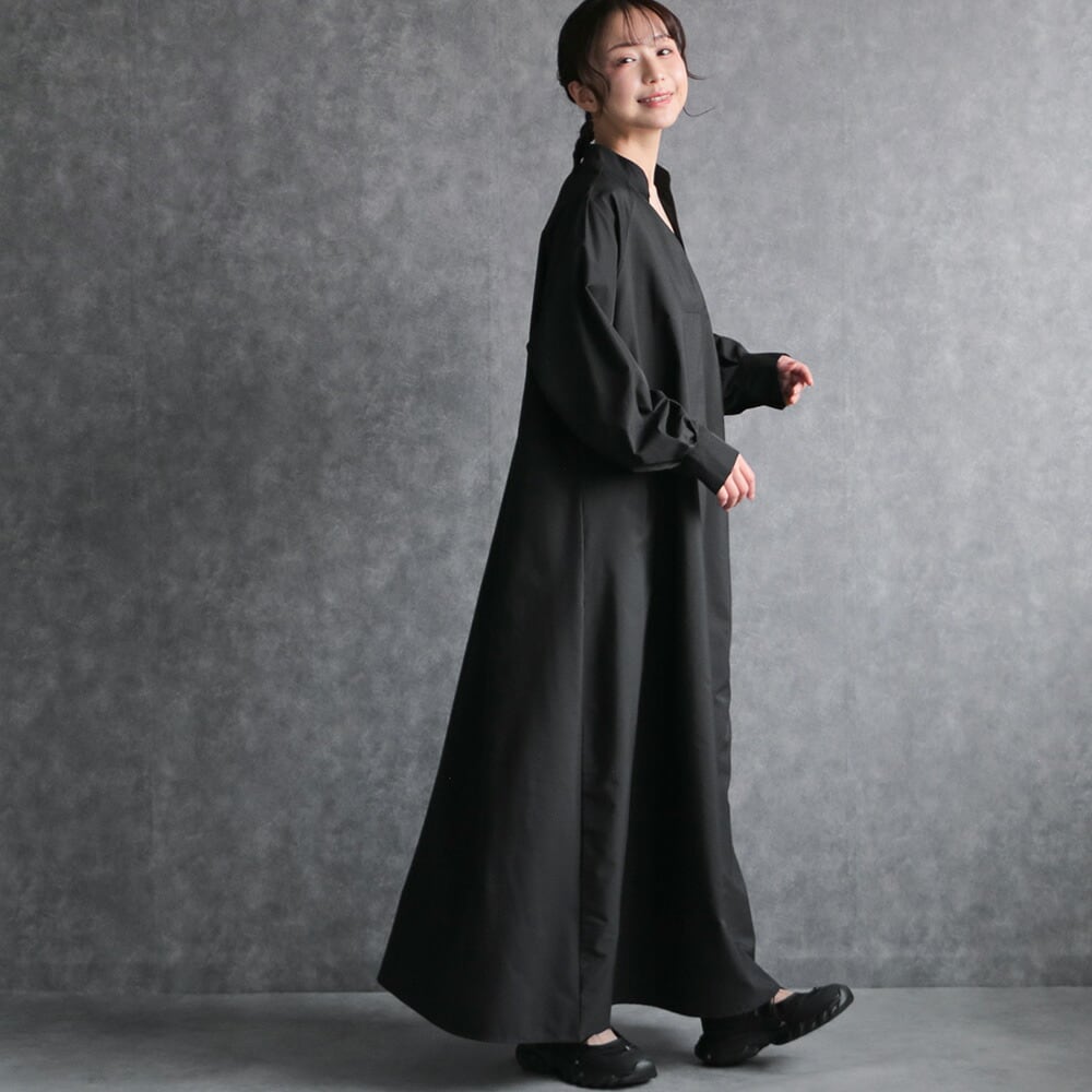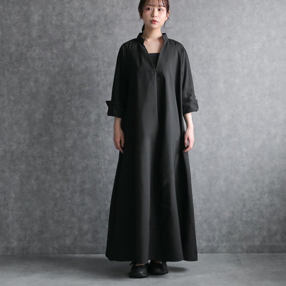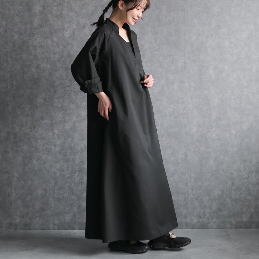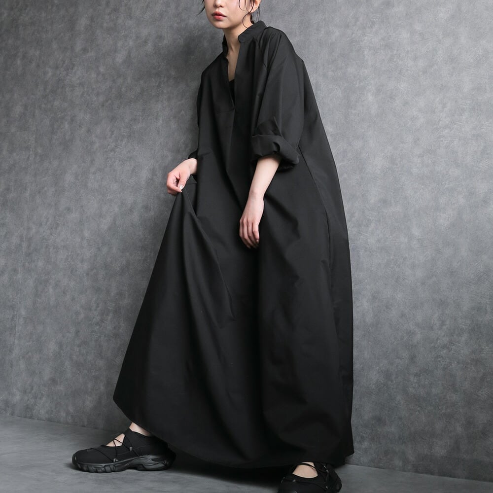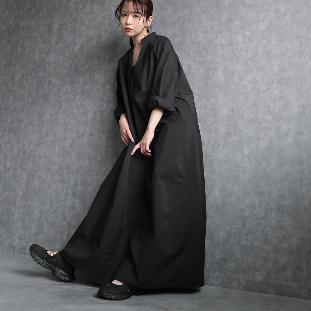 330119 any day エニーデイ シャツワンピース 黒 ロング 長袖 ワンピース ワンピ スキッパー レディース マキシ丈 きれいめ シンプル 無地 大人 ナチュラル ビッグシルエット ゆったり 体型カバー マタニティ ママ 送料無料