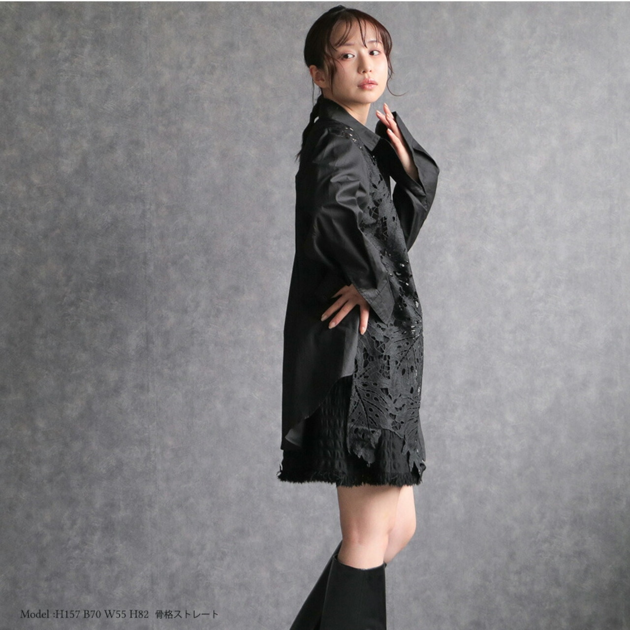 レースシャツ レディース ロング 黒 大人 おしゃれ デザイン 個性派 切り替え トップス 長袖 ブラウス