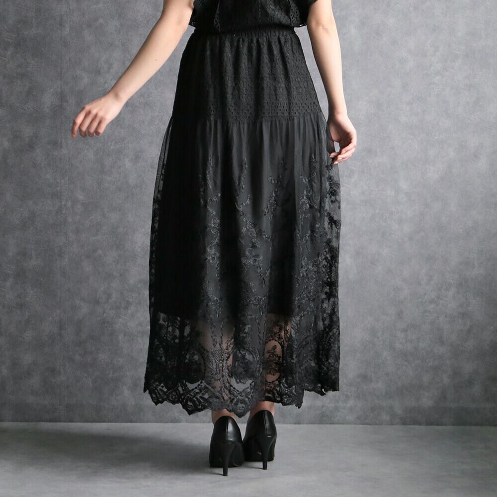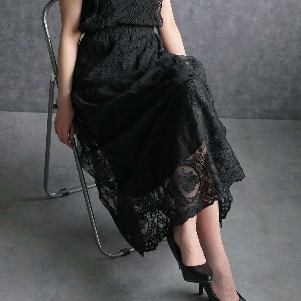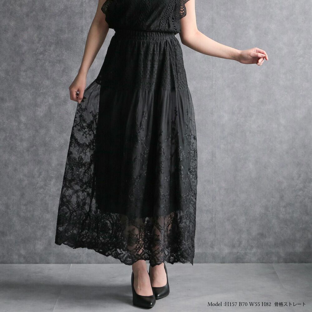 330112 any day エニーデイ 黒 レース スカート レディース セレモニー フォーマル カジュアル ロング丈 レーススカート ロングスカート 大人 通勤 おしゃれ 女子会 デート 20代 30代 送料無料