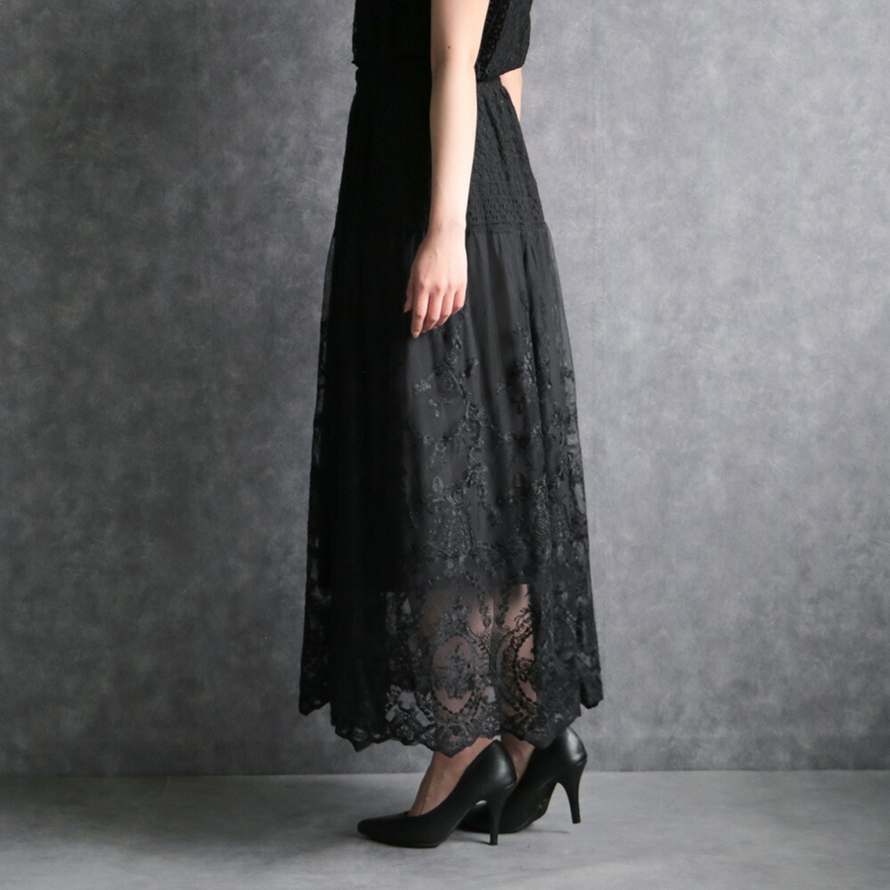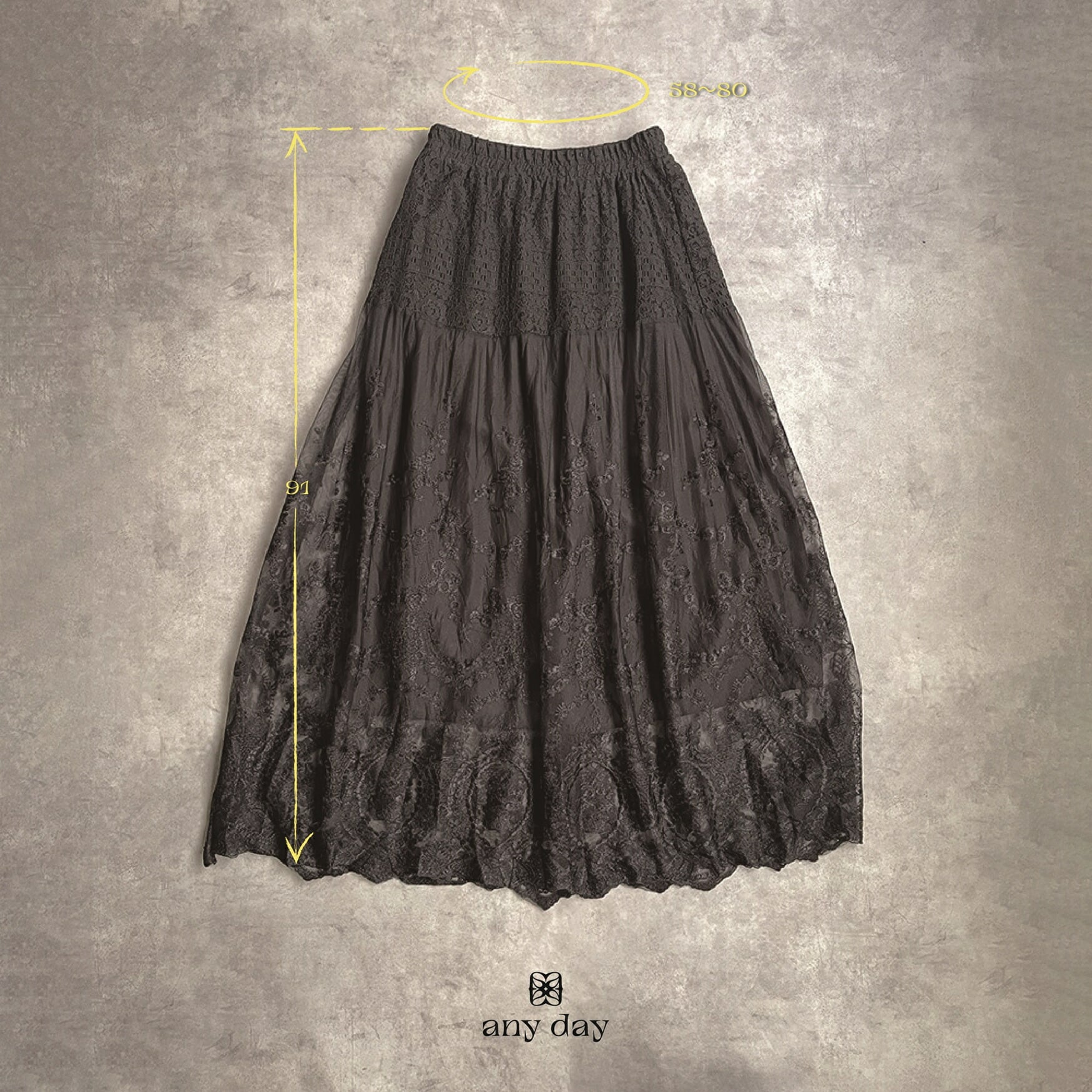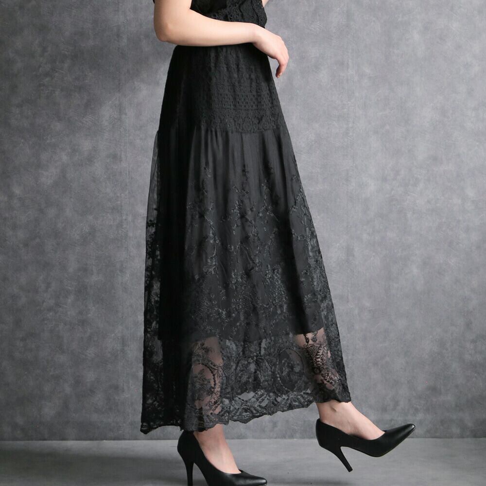 330112 any day エニーデイ 黒 レース スカート レディース セレモニー フォーマル カジュアル ロング丈 レーススカート ロングスカート 大人 通勤 おしゃれ 女子会 デート 20代 30代 送料無料