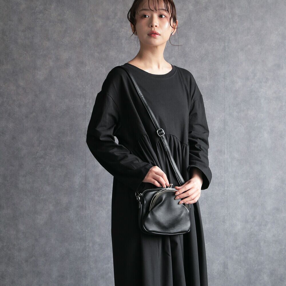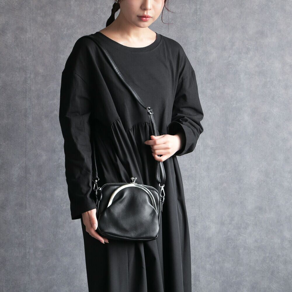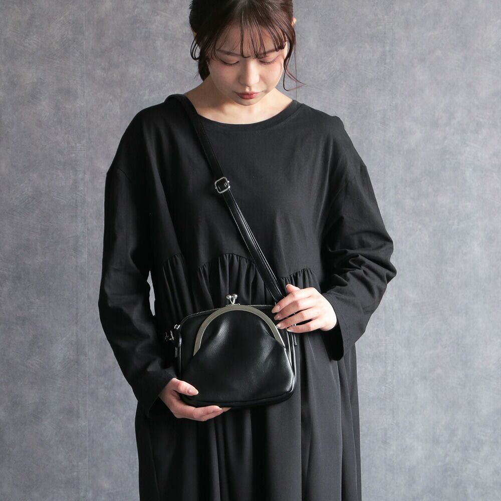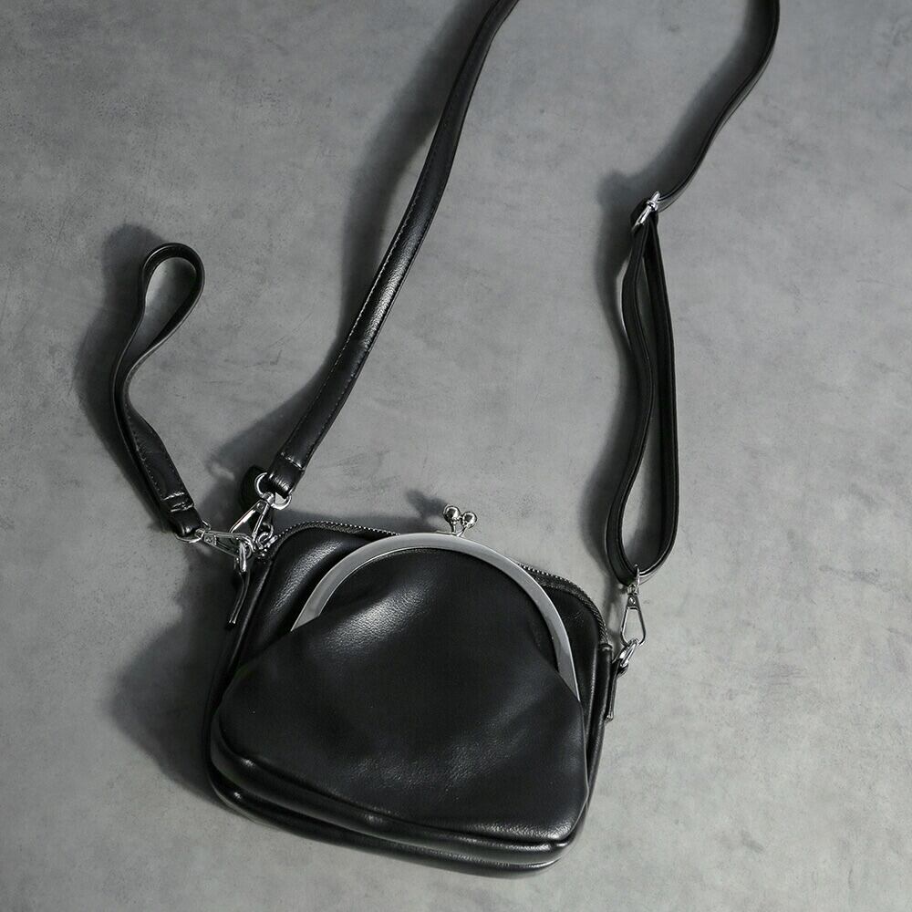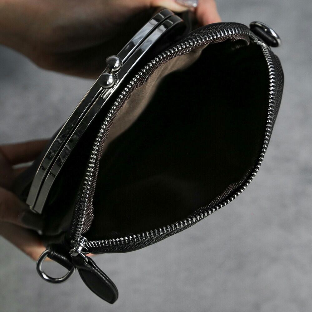 ショルダーバッグ がま口 財布 バッグ ブラック 黒 シルバー 斜めがけ 鞄 レトロ かわいい レディース