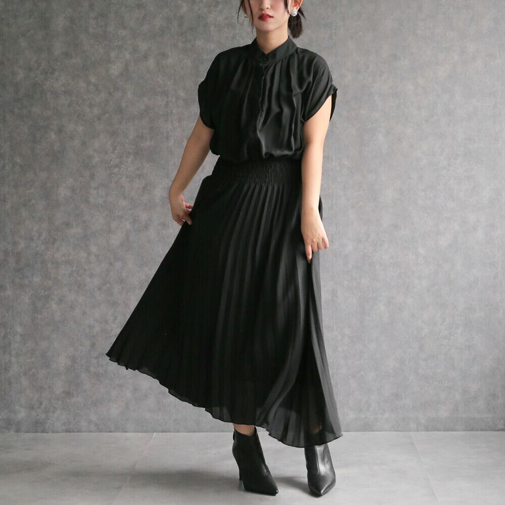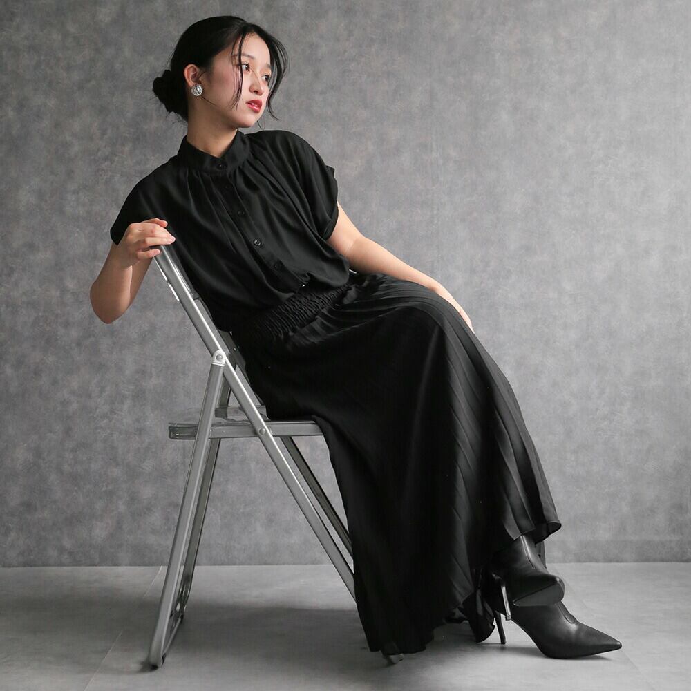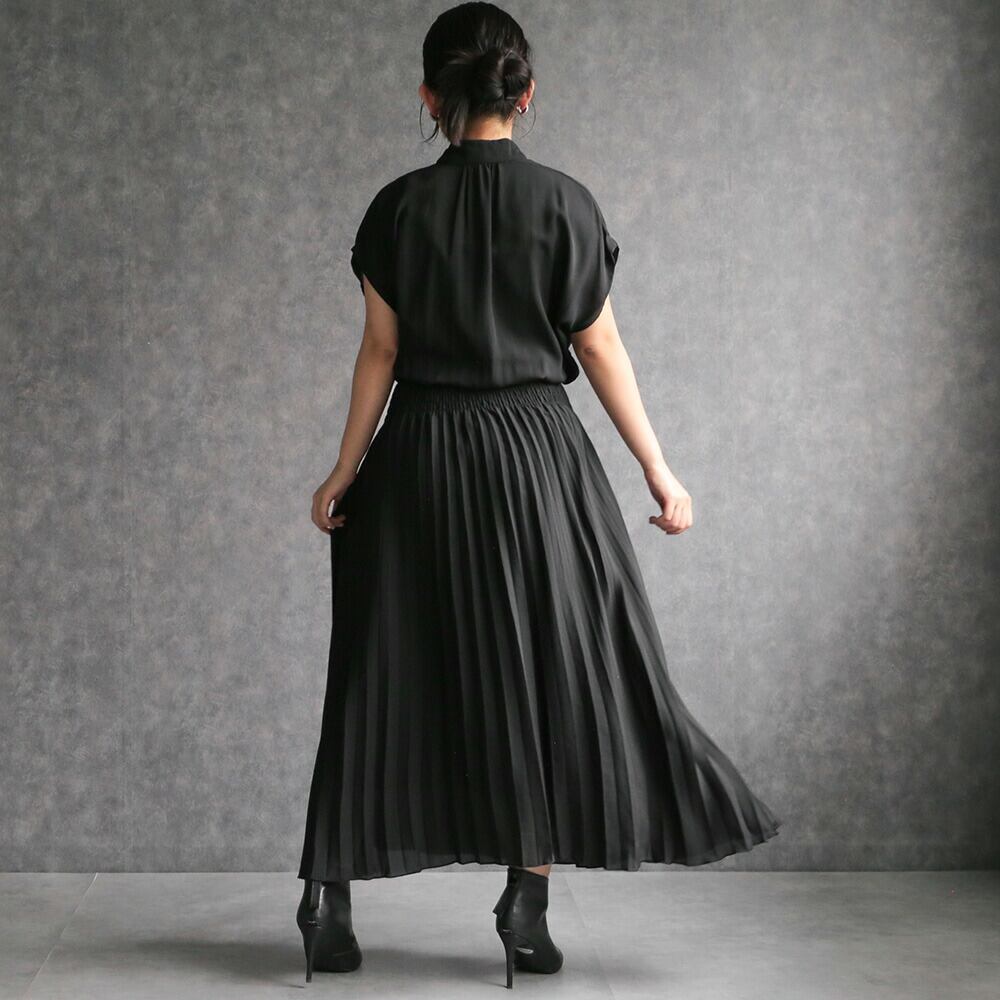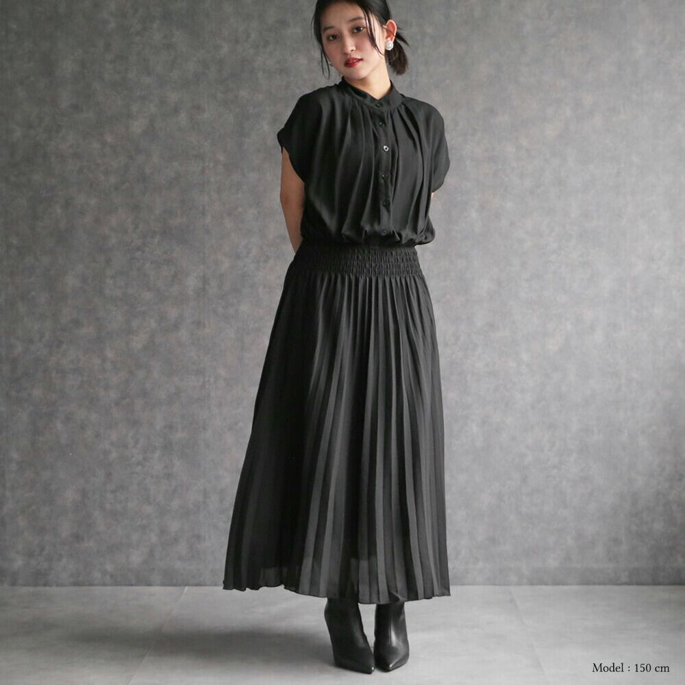 330140 any day エニーデイ ワンピース レディース 春 きれいめ ロングワンピース オフィスカジュアル 黒 フレンチスリーブプリーツワンピース セミフォーマル ワンピ デート お出かけ 食費会 顔合わせ 半袖 20代 30代 40代 50代 送料無料