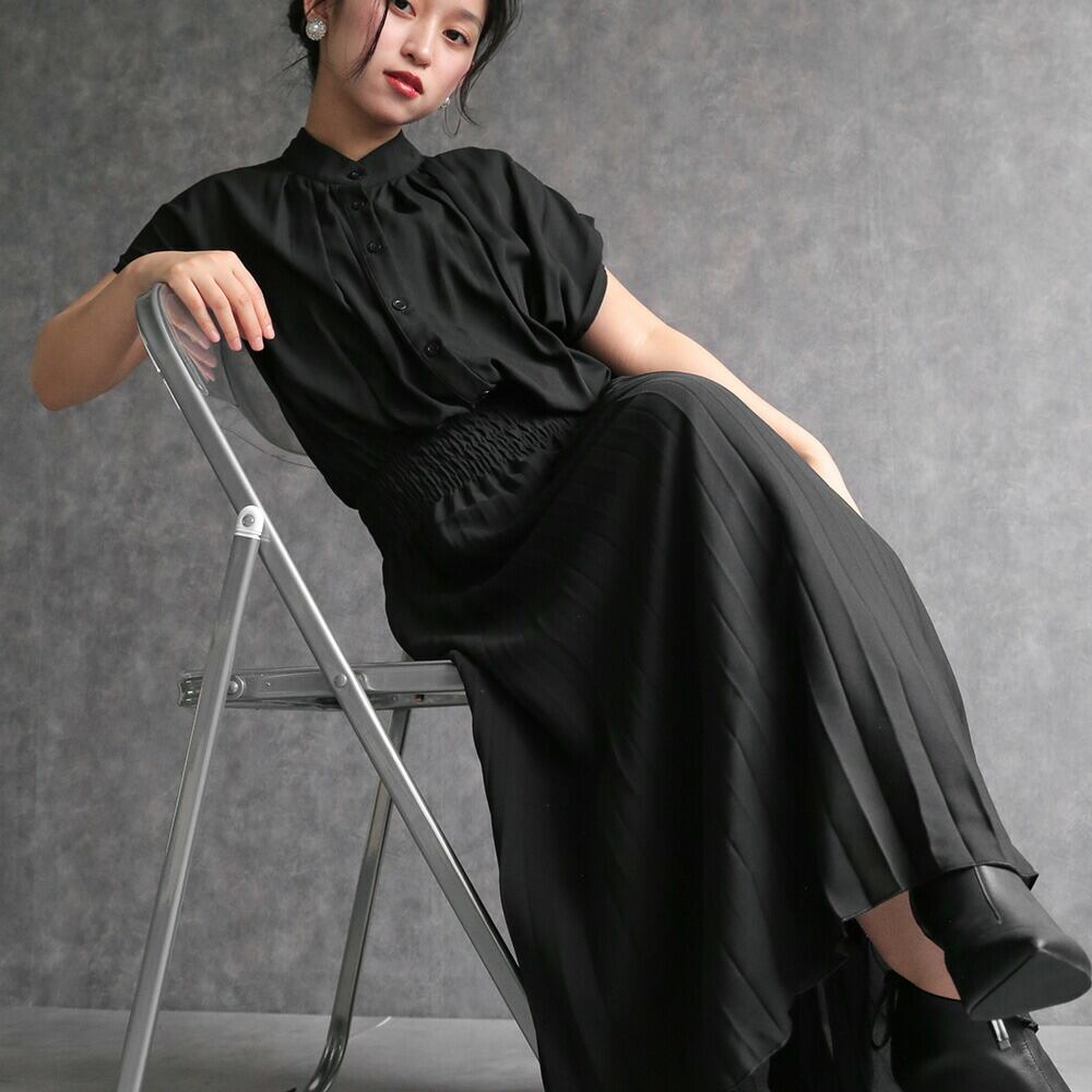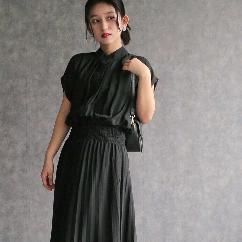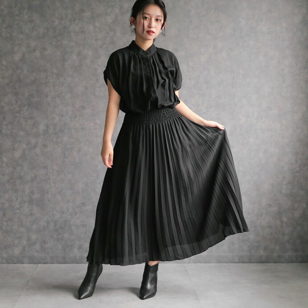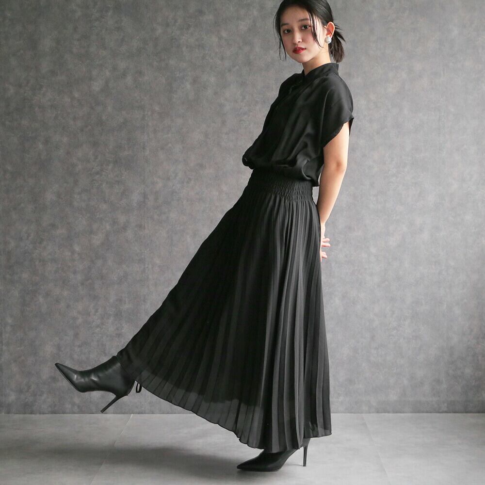 330140 any day エニーデイ ワンピース レディース 春 きれいめ ロングワンピース オフィスカジュアル 黒 フレンチスリーブプリーツワンピース セミフォーマル ワンピ デート お出かけ 食費会 顔合わせ 半袖 20代 30代 40代 50代 送料無料