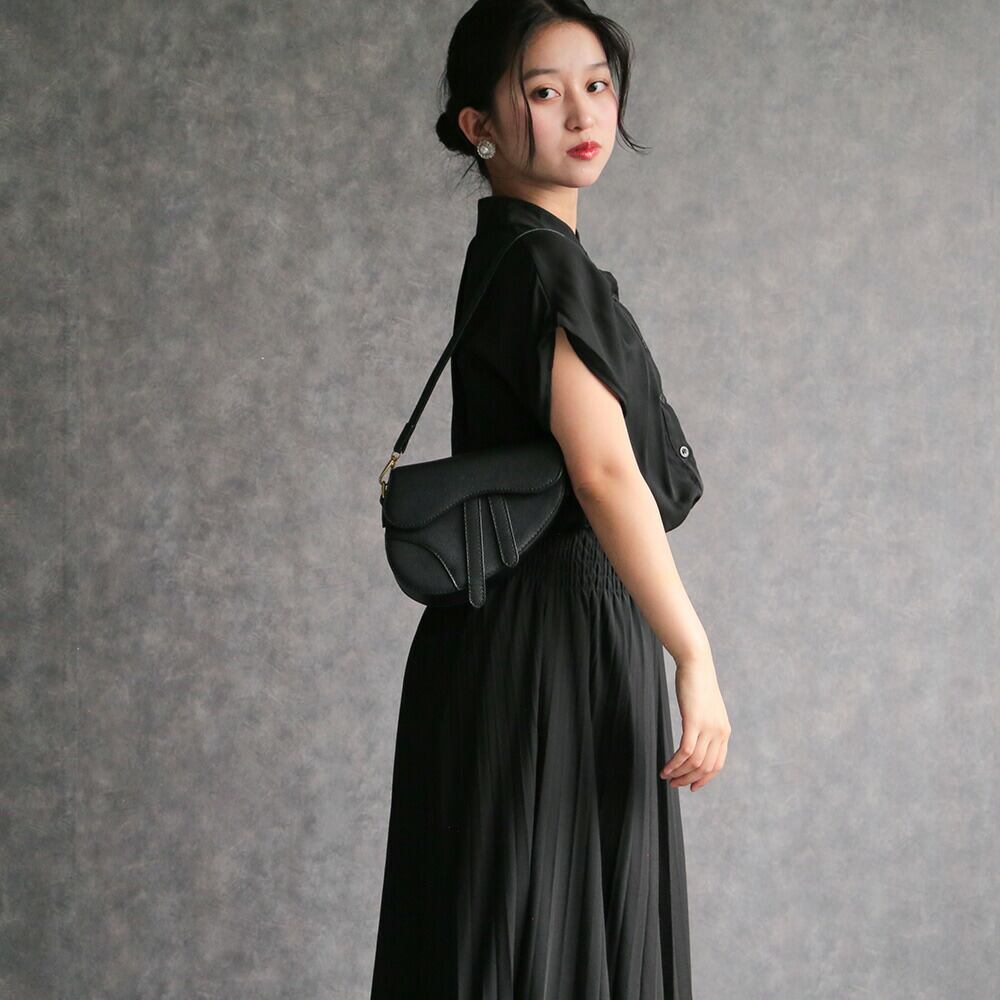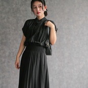 女性らしさを引き立てるプリーツワンピース。