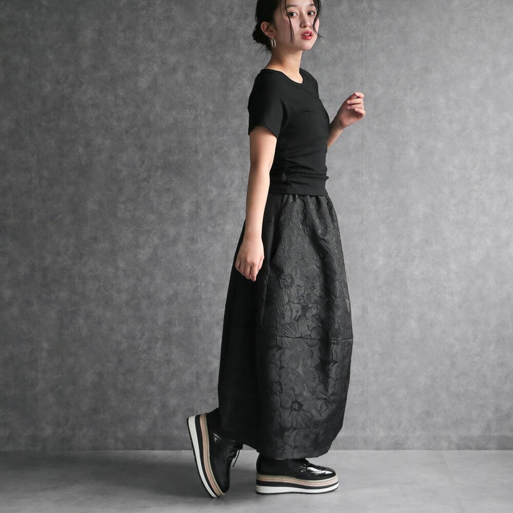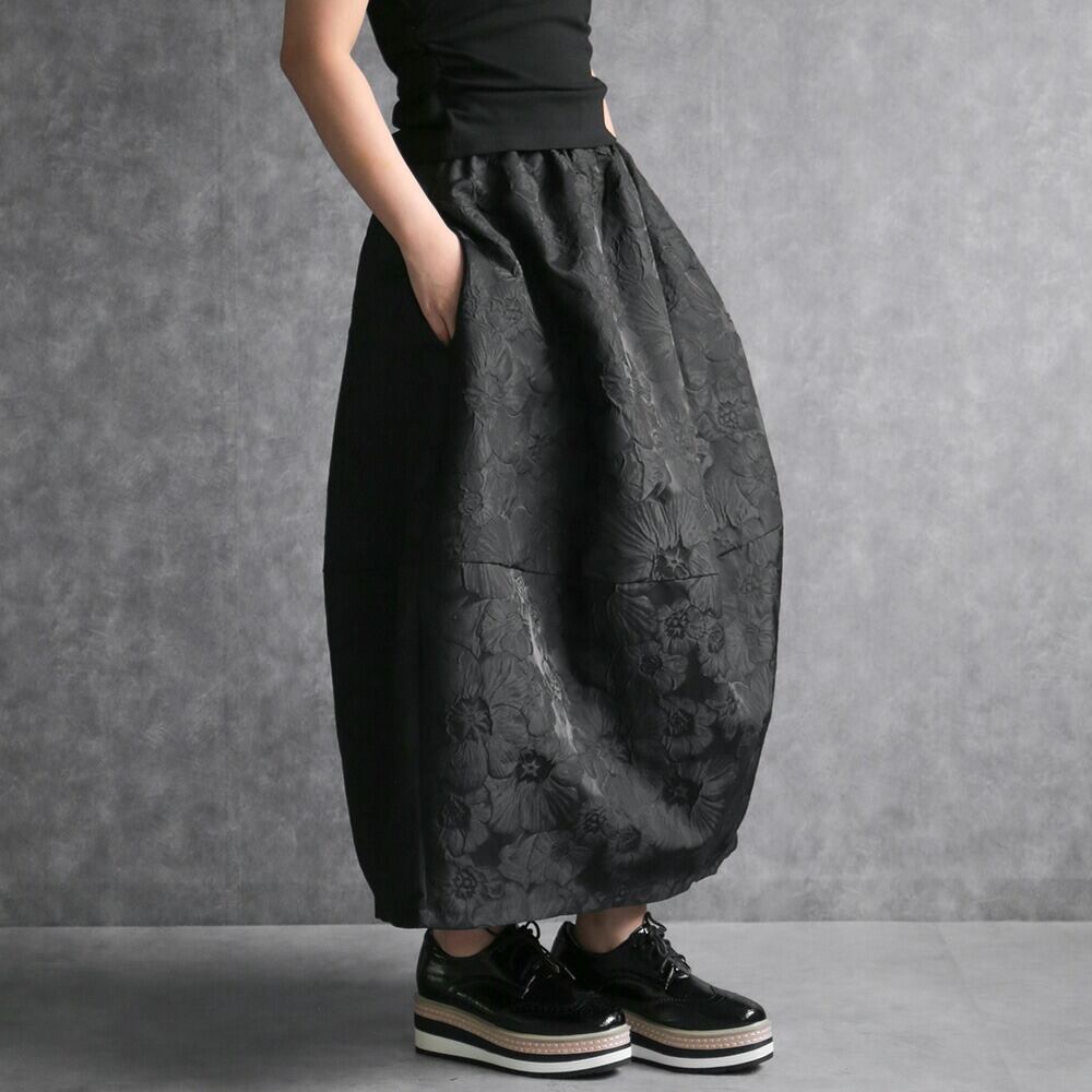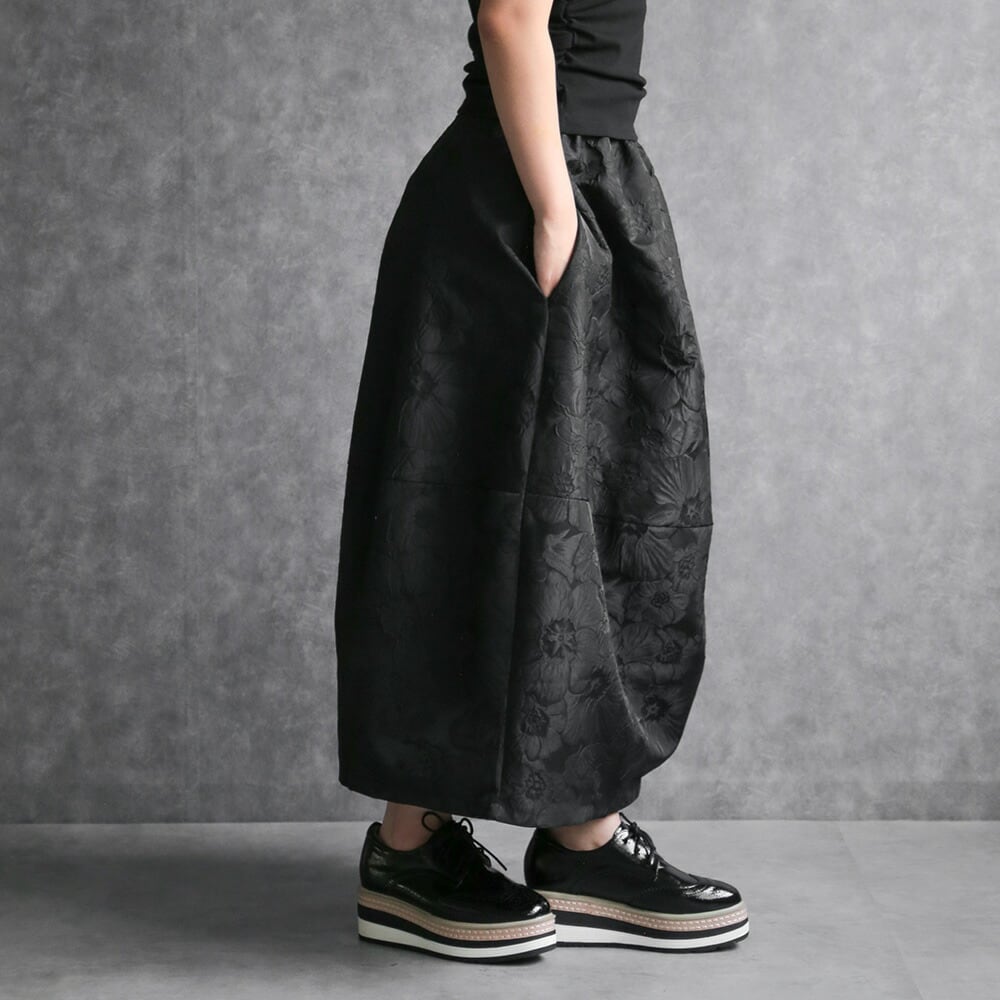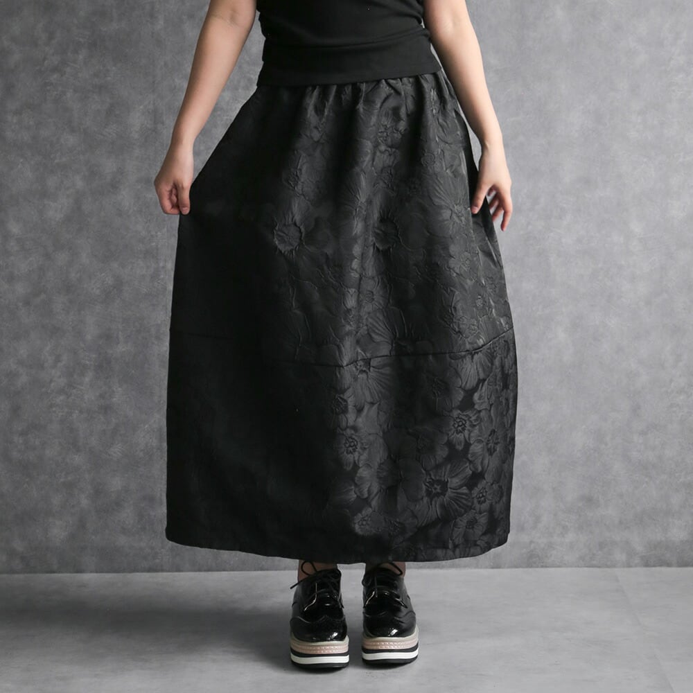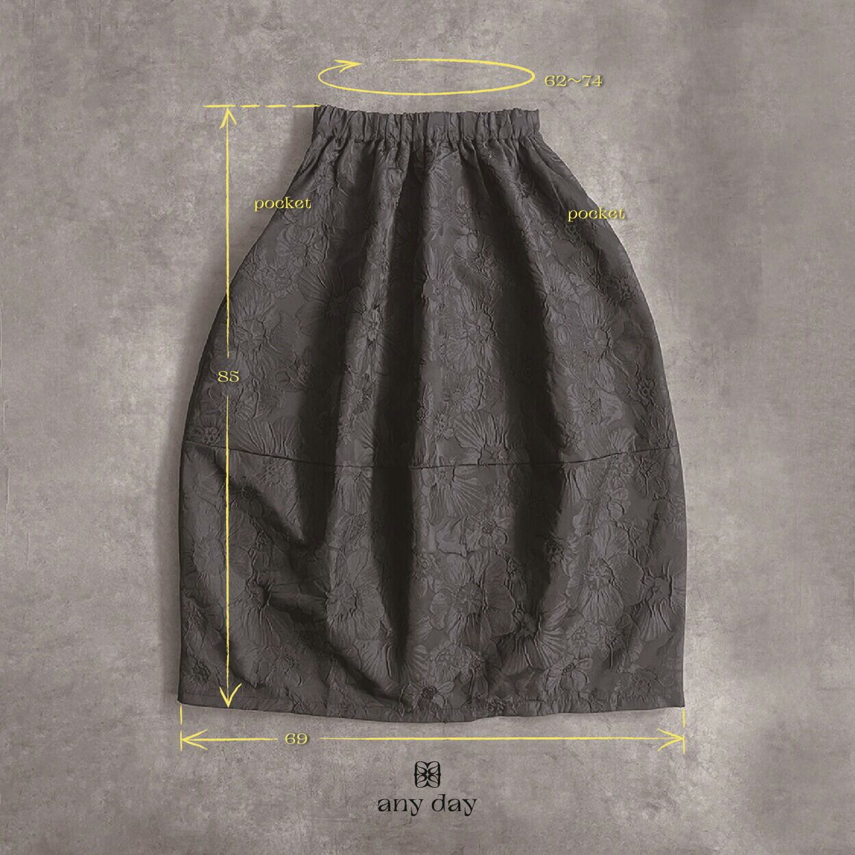330114 any day エニーデイ コクーン スカート バルーンスカート レディース ロング丈 黒 ボトムス フラワージャガードコクーンスカート ふんわり 春コーデ ポケット付き ウエストゴム 個性派スカート 大人かわいい 送料無料