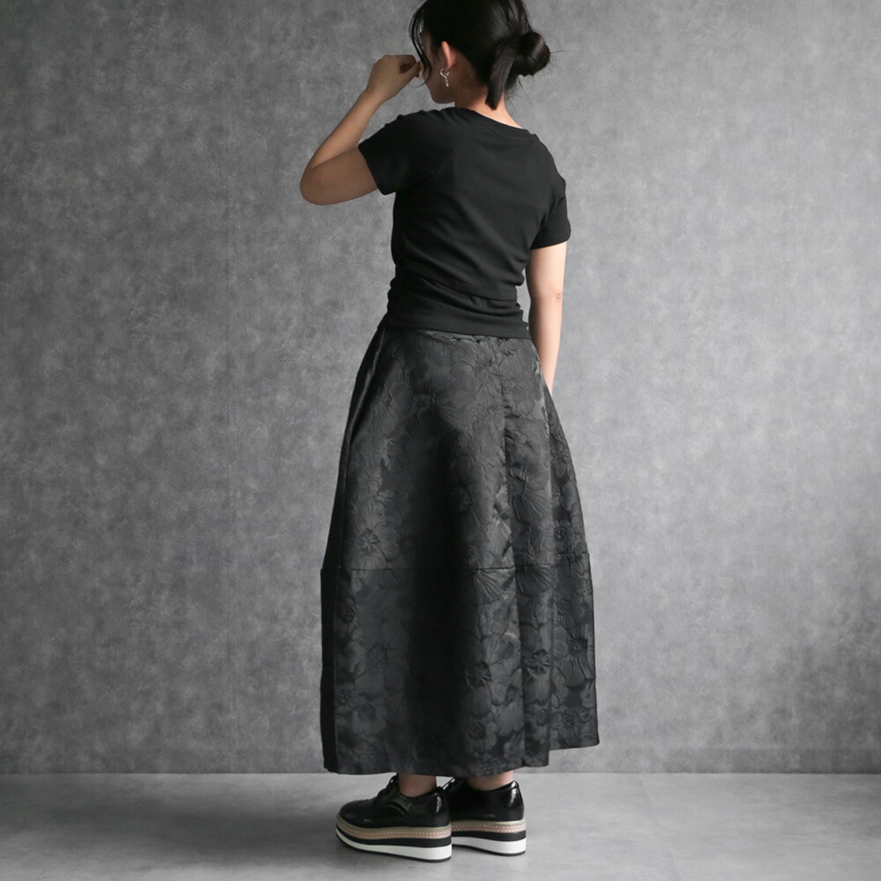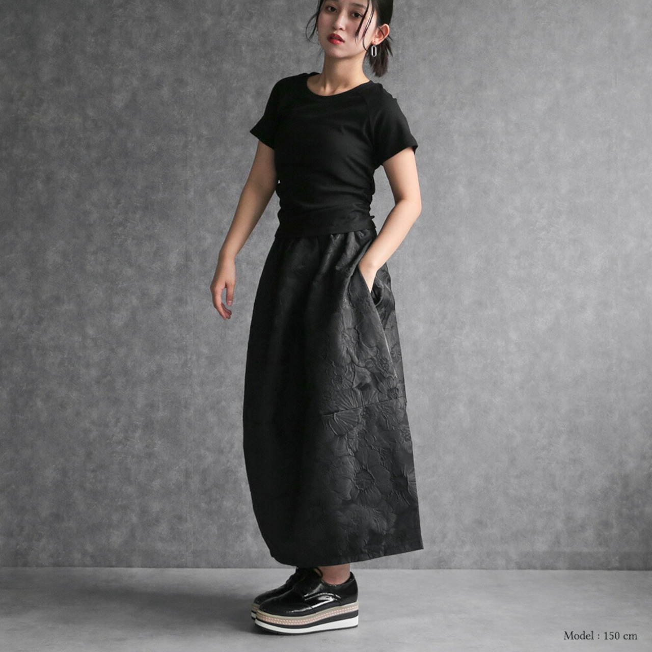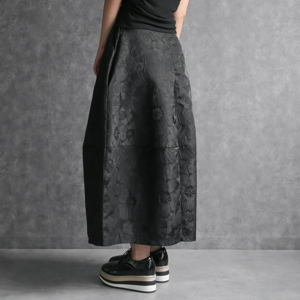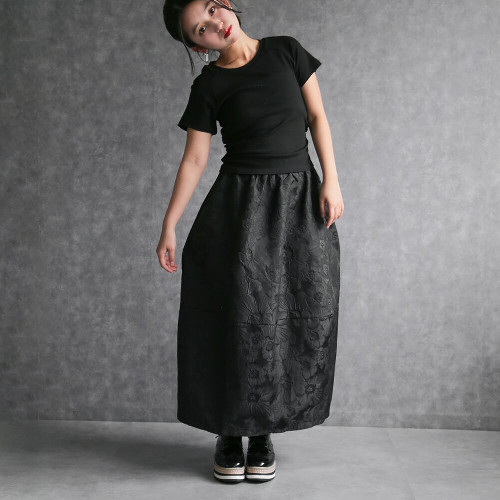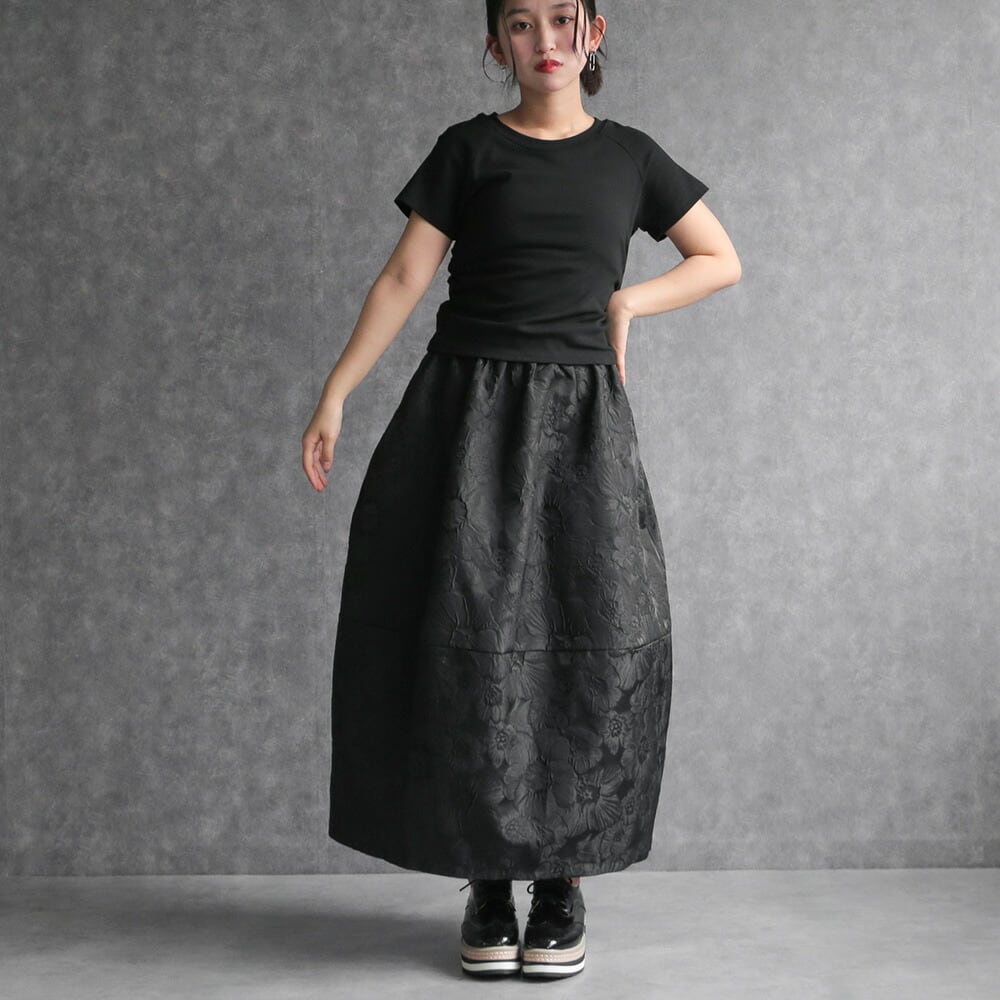 330114 any day エニーデイ コクーン スカート バルーンスカート レディース ロング丈 黒 ボトムス フラワージャガードコクーンスカート ふんわり 春コーデ ポケット付き ウエストゴム 個性派スカート 大人かわいい 送料無料