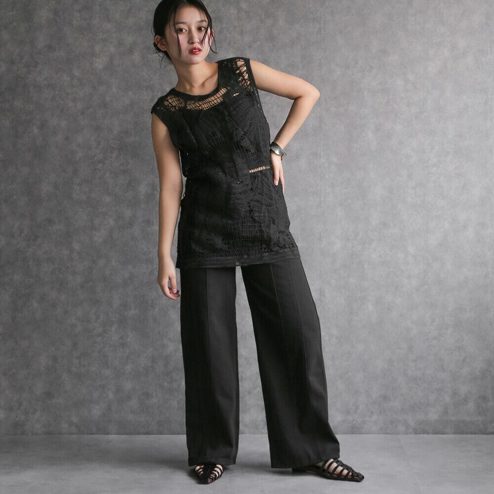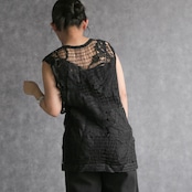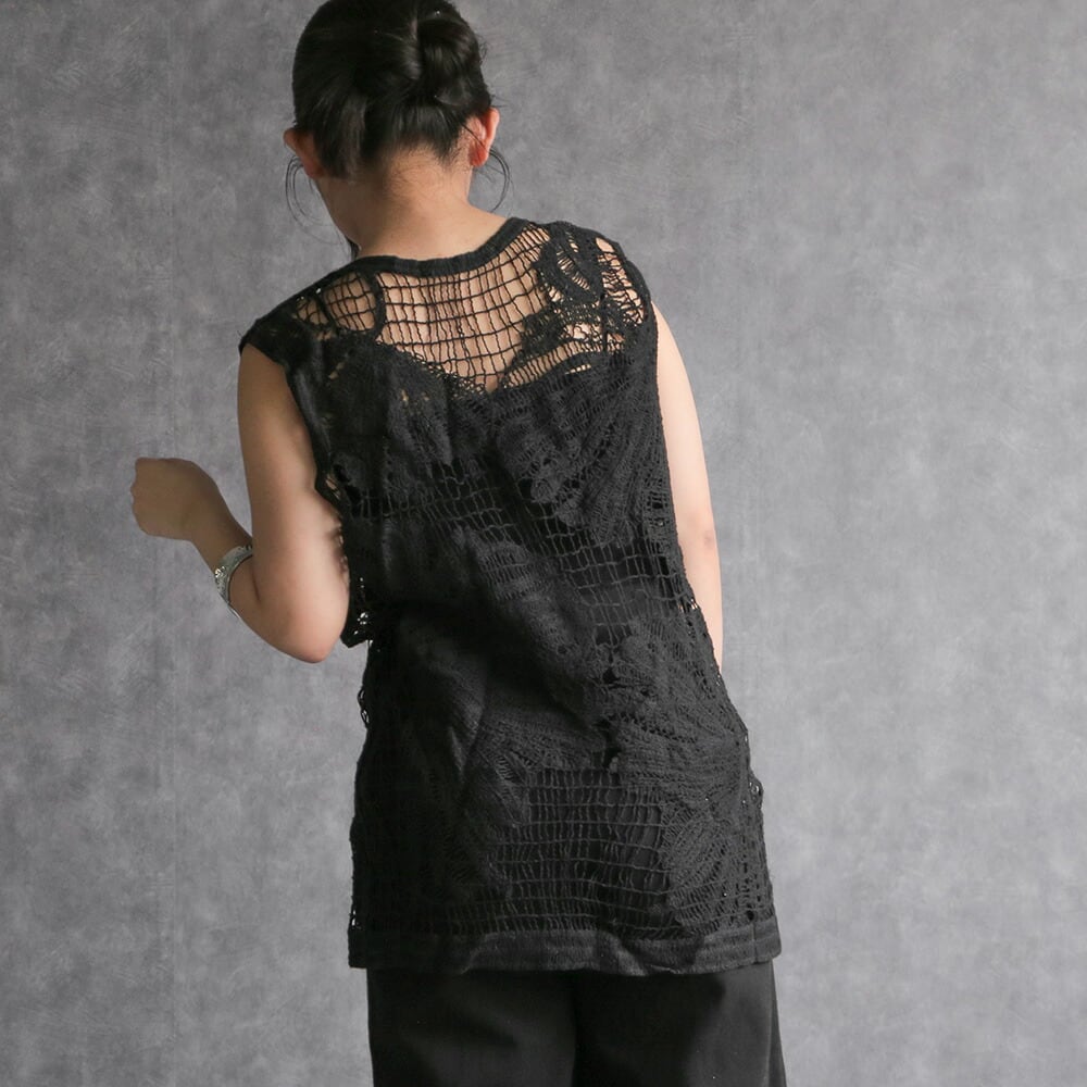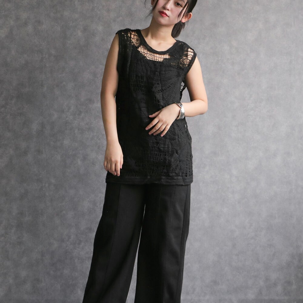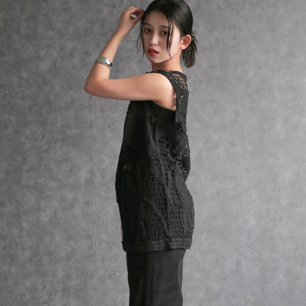 トップス ノースリーブ シャツ カットソー ブラック 編み 重ね着 シンプル モード 大人可愛い 透かし編み 海 旅行