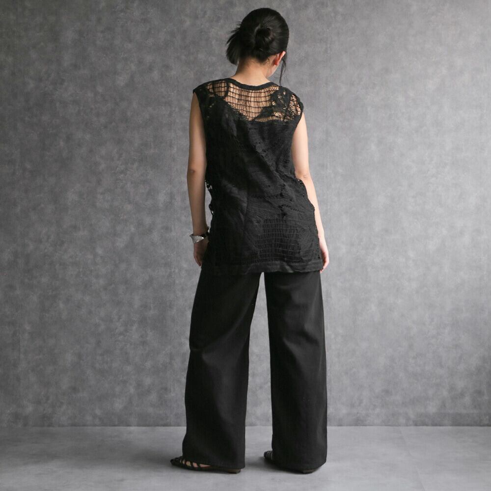 330131 any day エニーデイ ノースリーブ トップス レディース クロシェ編みノースリーブトップス おしゃれ 着回し レイヤード 黒 ブラウス カジュアル 夏 リゾート お出かけ 涼しい 10代 20代 30代 送料無料