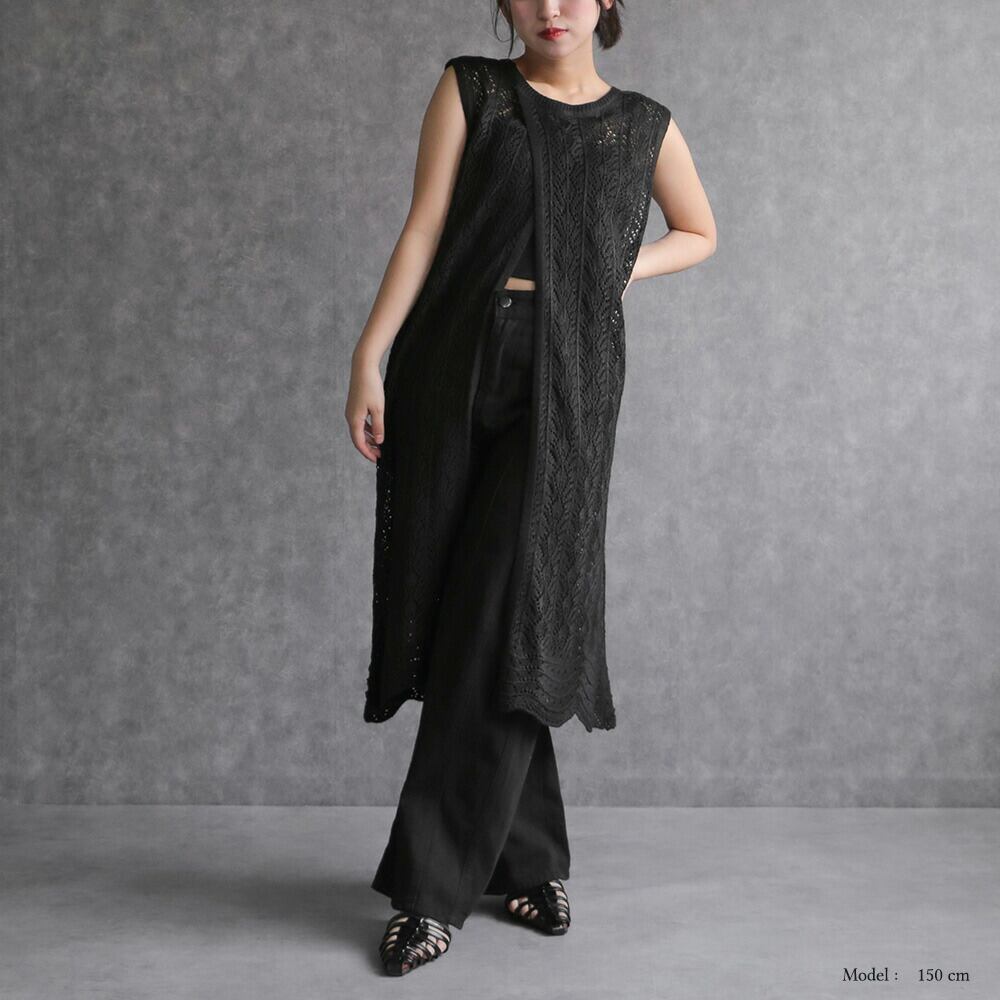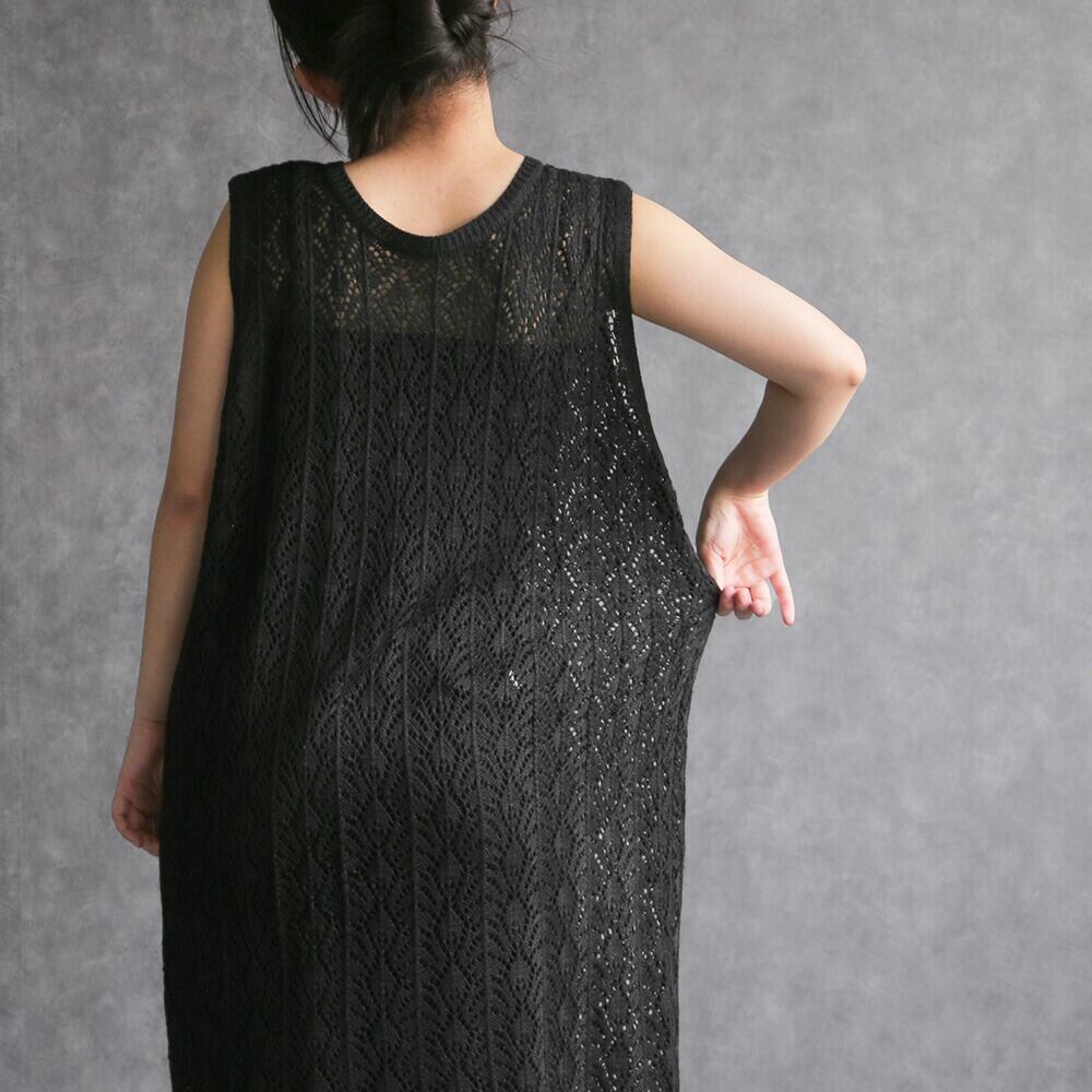 330130 any day エニーデイ レイヤード ワンピース ノースリーブ ワンピース 黒 レイヤード 重ね着 レディース 女性 フロントスリットノースリーブワンピース ストレート ロング丈 体型カバー 春 夏 秋 冬 送料無料