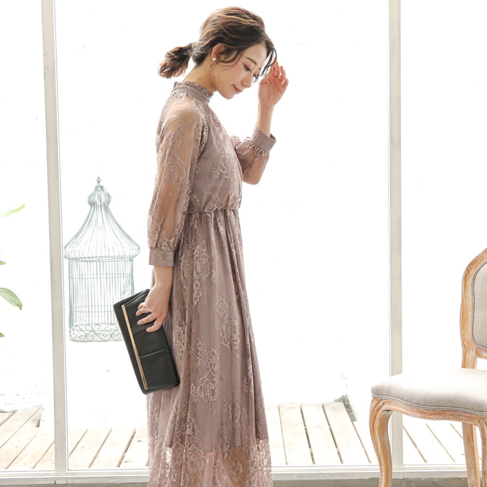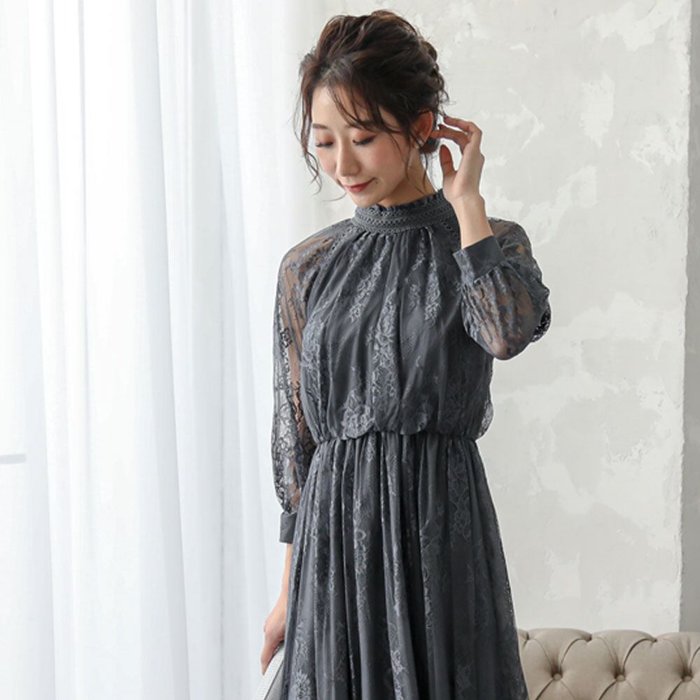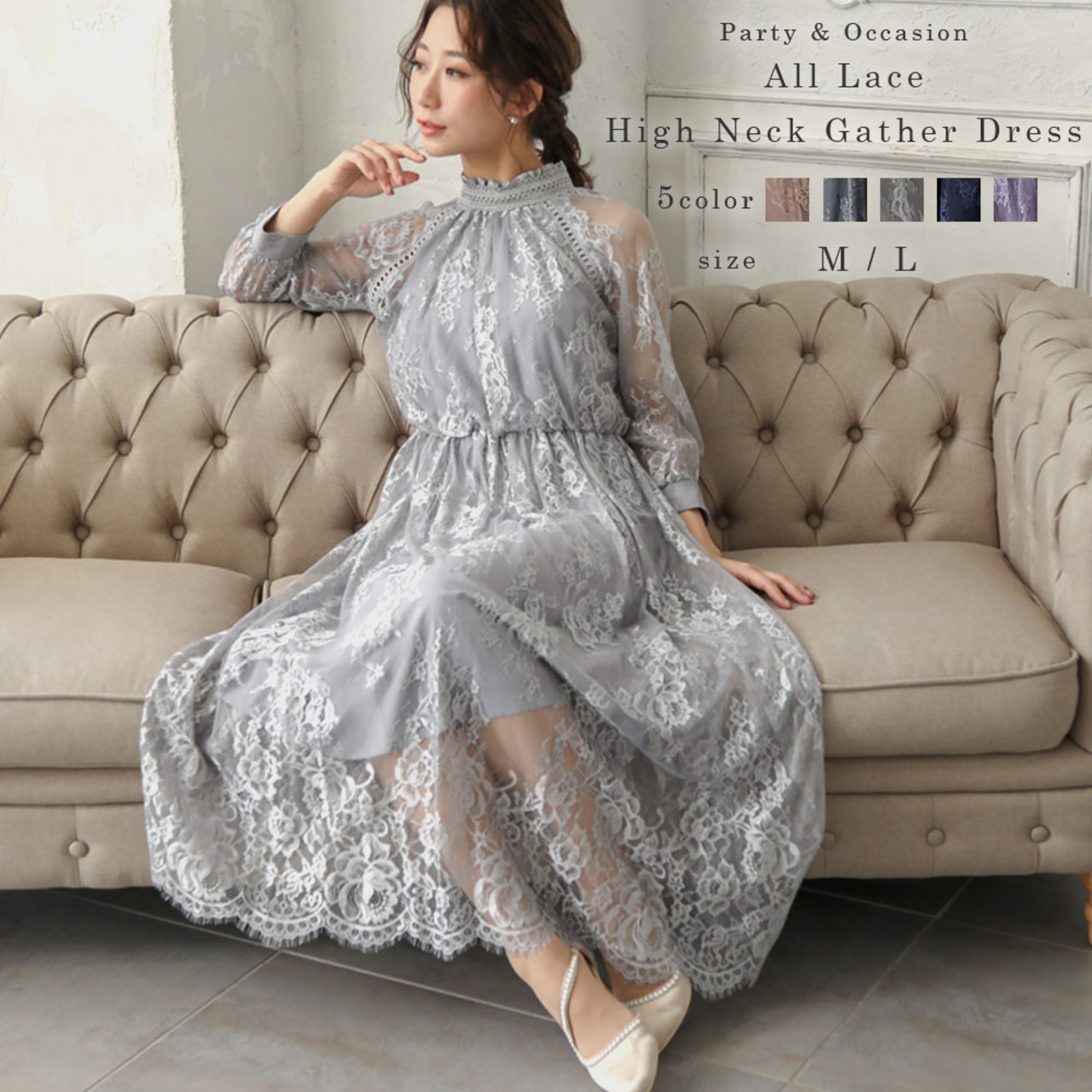300015 epic day エピックデイ オールレースハイネックギャザーワンピース ドレス 結婚式 ワンピース パーティードレス フォーマルドレス レース お呼ばれ 2次会 謝恩会 披露宴 同窓会 女子会 成人式 参観日 発表会 卒業式 卒園式 お祝い 内祝い 食事会 七五三 入学 卒業 上品 送料無料