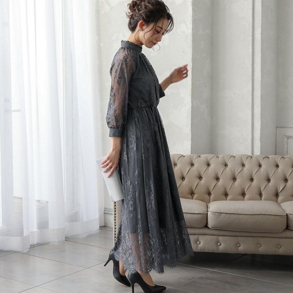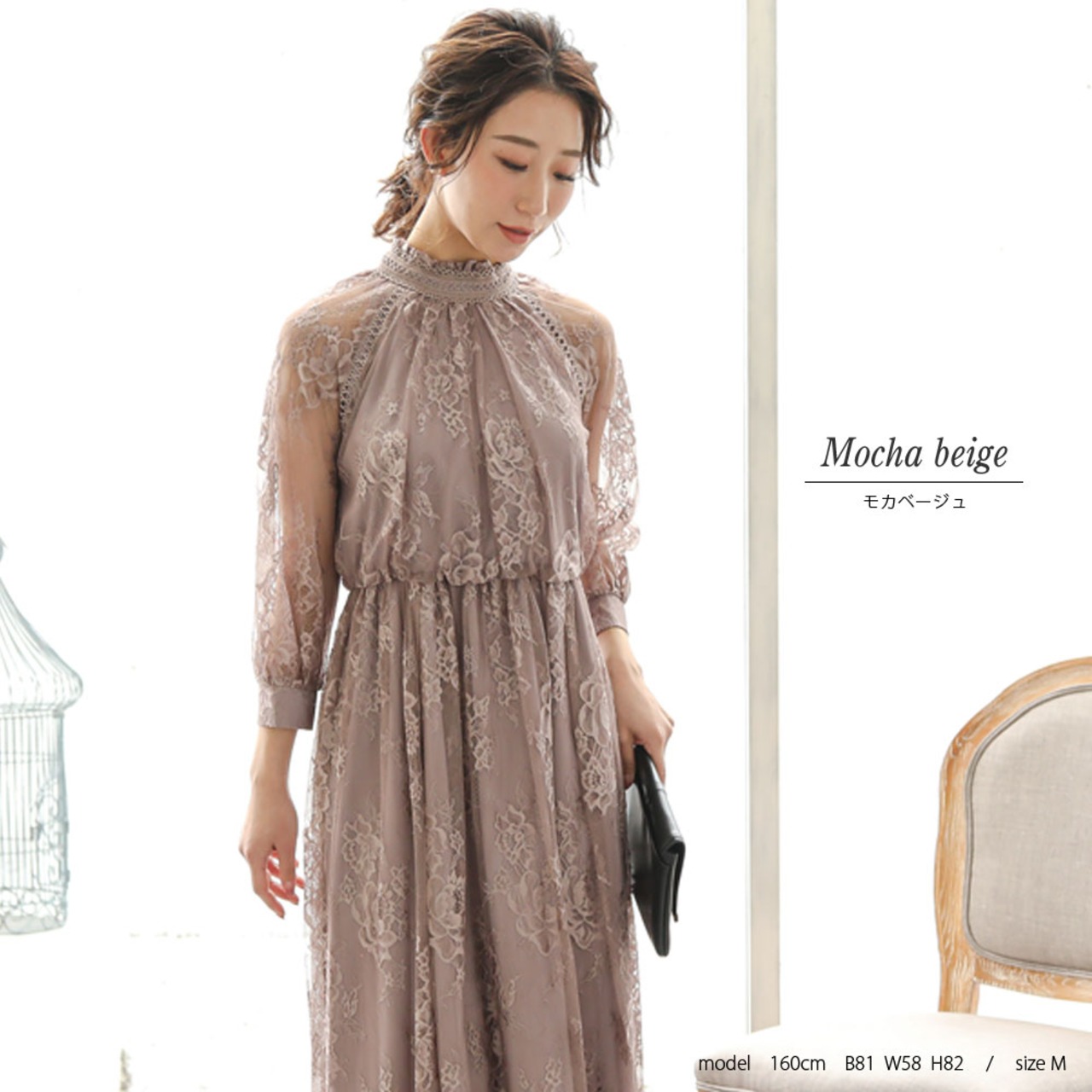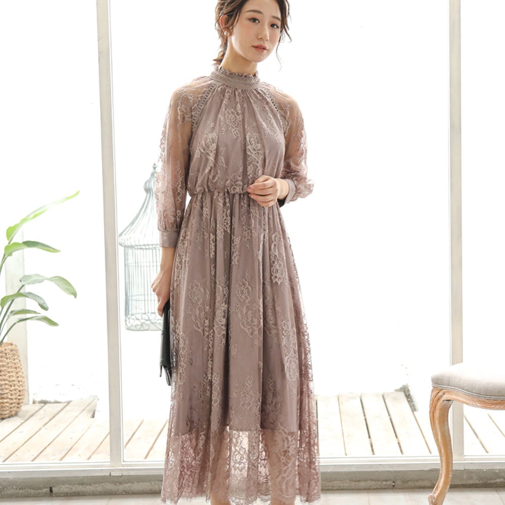 300015 epic day エピックデイ オールレースハイネックギャザーワンピース ドレス 結婚式 ワンピース パーティードレス フォーマルドレス レース お呼ばれ 2次会 謝恩会 披露宴 同窓会 女子会 成人式 参観日 発表会 卒業式 卒園式 お祝い 内祝い 食事会 七五三 入学 卒業 上品 送料無料