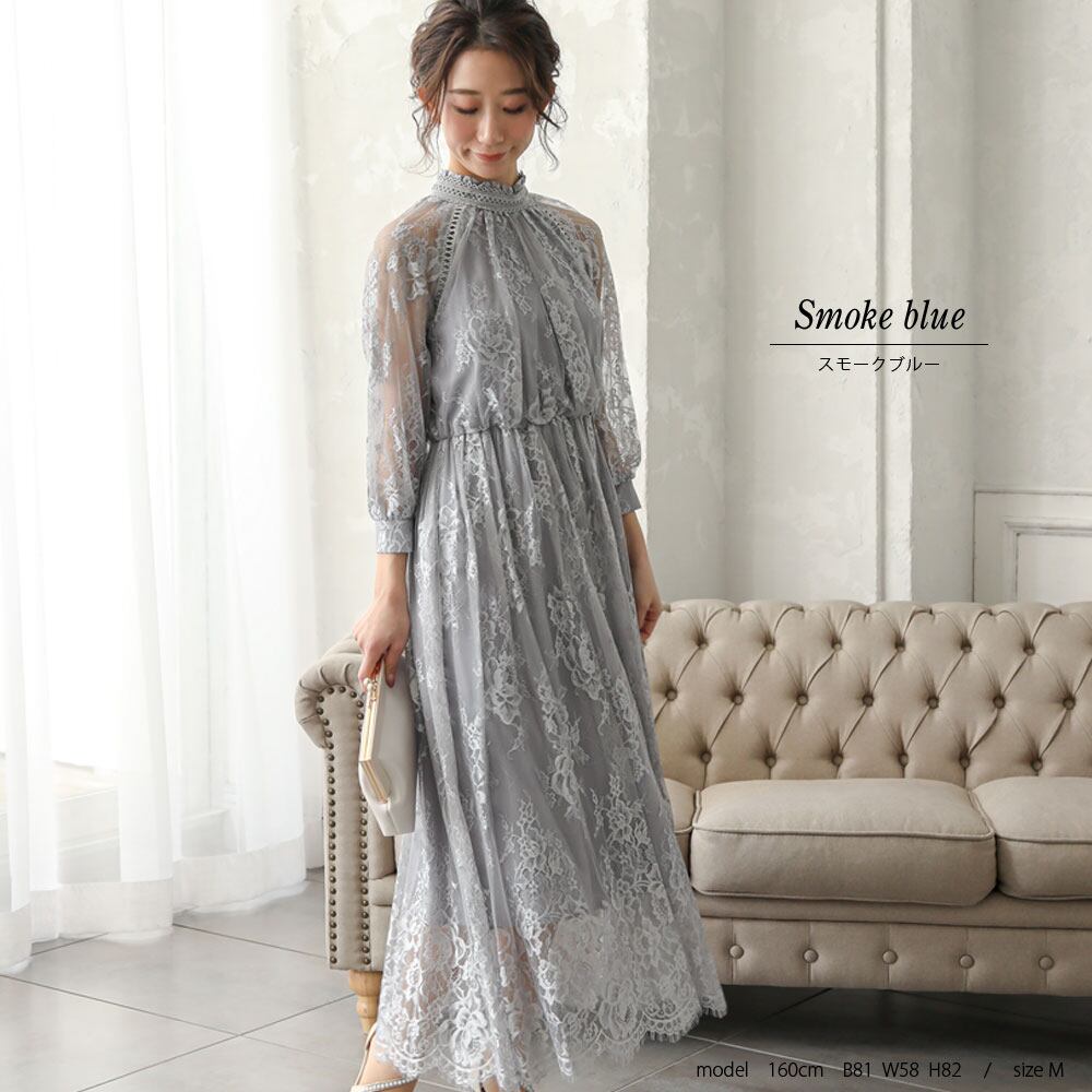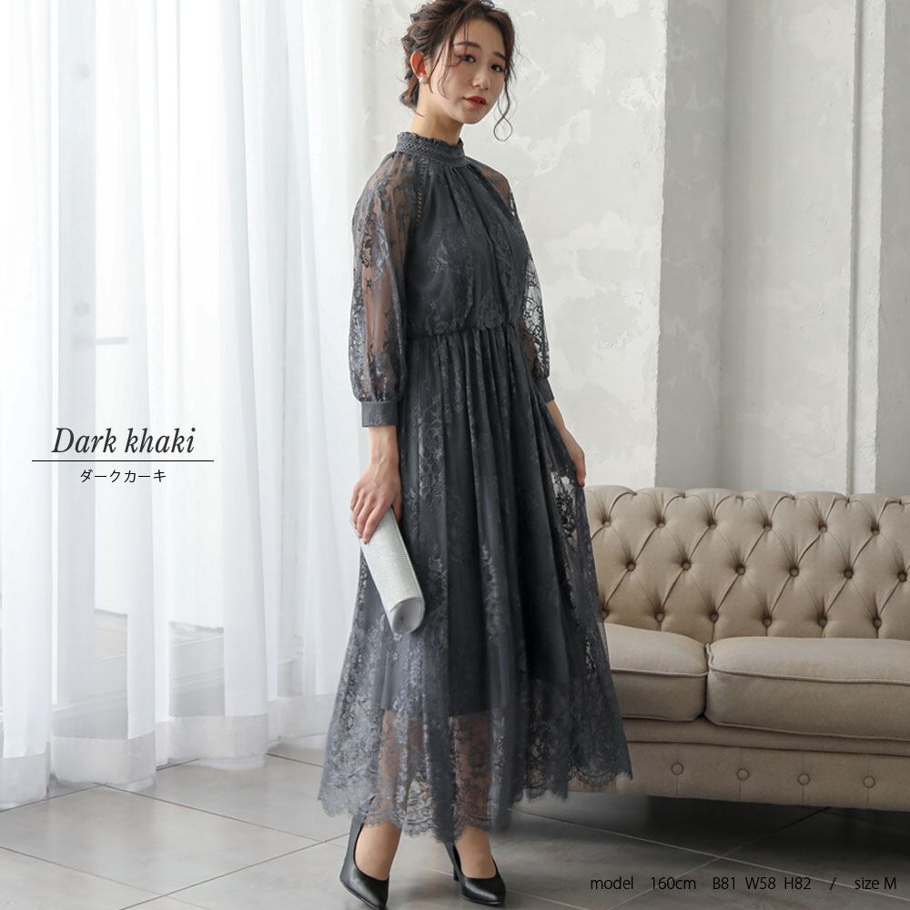 ロングドレス フォーマルワンピース お揃いドレス オケージョンドレス レースワンピ 2次会 謝恩会 女子会 参観日 発表会 卒業式 卒園式 食事会 七五三 入学式 入園式 40代 50代