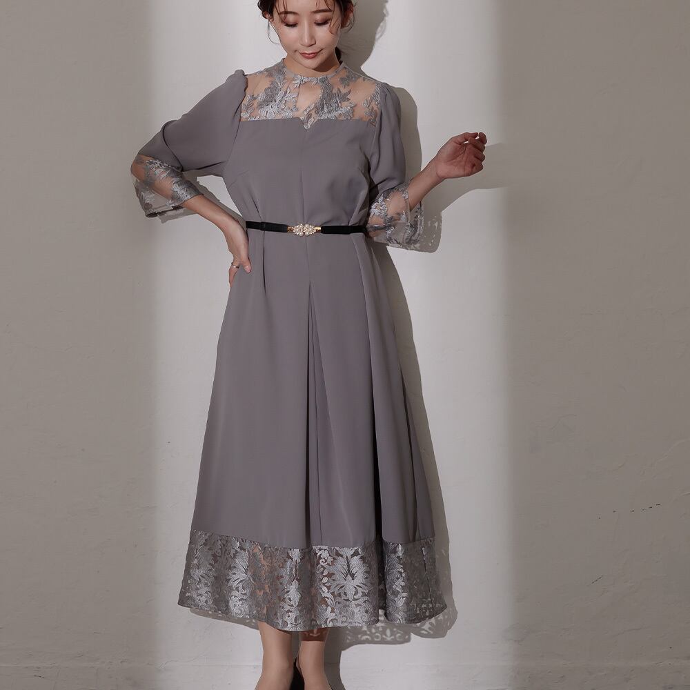 ■ドレス商品につきましては、美しいシルエットやデザイン性を重視するため、コンシールファスナーを使用しております。そのため、ウエスト部分でファスナーの上げ下げ時に引っ掛かりが生じる場合がございます。あらかじめご了承くださいませ。