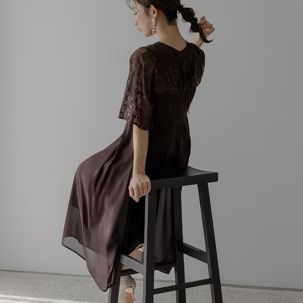 ジョーゼット素材の優雅な揺れが、動くたびに美しいシルエットを作り出します。