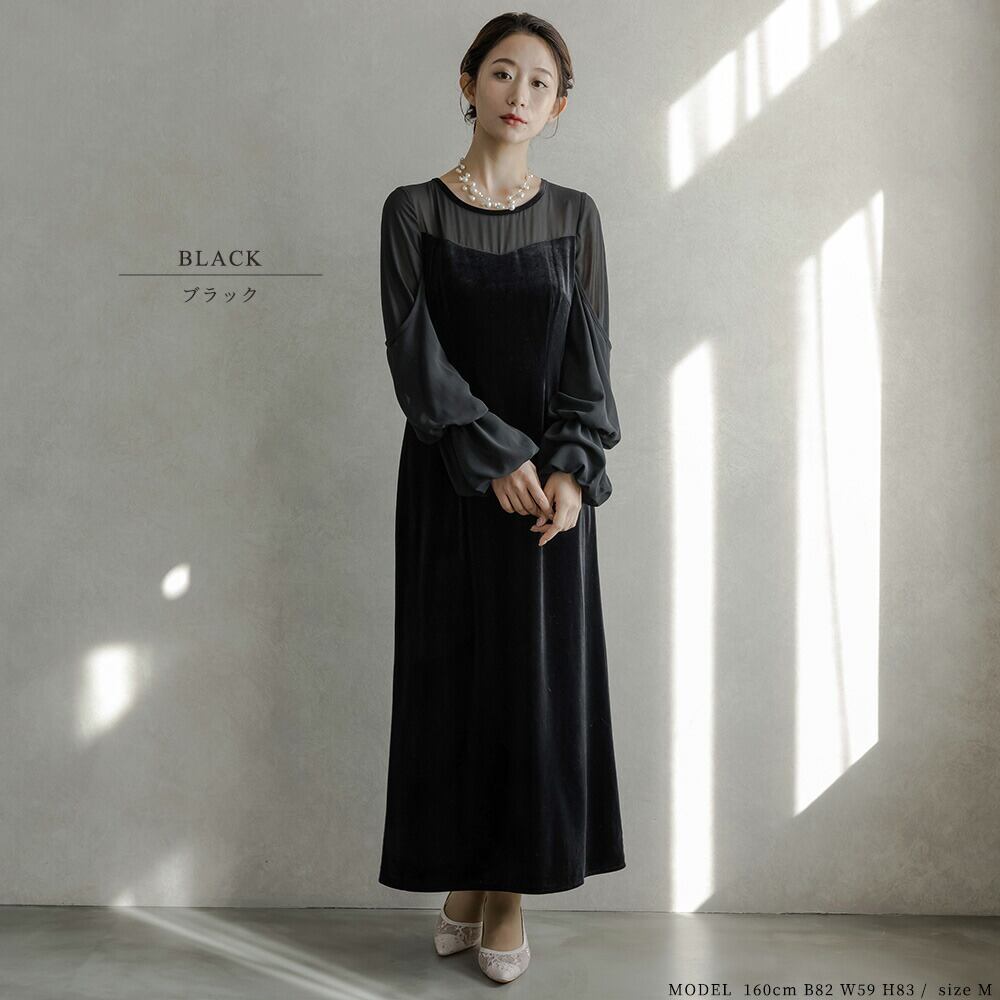 300165 epic day エピックデイパーティードレス ワンピース 結婚式 ドレス バルーンスリーブベロアドレス フォーマルドレス ベロア 長袖 ロング丈 ピアノ発表会 二次会 披露宴 成人式 同窓会 食事会 20代 30代 40代 送料無料